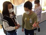 3年生の外国語活動では、色と形を英語で表現することを学習しています。どんな色と形の色紙が欲しいか教師や友達とインタビューをしました。だんだん自信をもって英語を話す児童が増えてきました。
