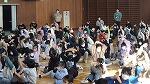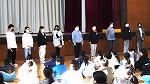次に「いのちの歌」を全校で歌いました。「歌詞の意味を考えながら歌おう」というめあてで、音楽主任から歌い方のお話の後、心を込めて歌いました。きれいな歌声が体育館に響きわたりました。