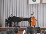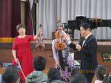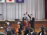 本日、「コルディス・ムジカ」の皆様を講師に、音楽鑑賞会が体育館で行われました。演奏で使う四つの弦楽器を紹介していただきました。また、田沼小学校の校歌や日ごろから親しんでいる曲を演奏していただきました。すてきな音楽に包まれた楽しいひとときでした。