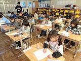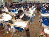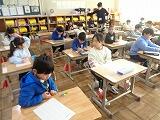 今日から1年生も参加することになりました。教師の説明を真剣な表情で聞いて取り組みました。
