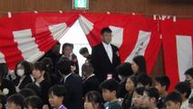 午前10時、卒業生入場、修礼。開式のことば、国歌斉唱の後、卒業証書授与と静粛ななかに堂々と卒業生の返事や「ありがとうございます」の言葉が会場に響いていました。