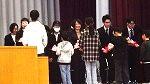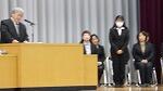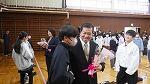 校長先生からの転退職される先生方のご紹介とお話に続き、代表児童による花束贈呈、5年生代表児童による「お別れのことば」、そして、転退職される先生からの挨拶がありました。